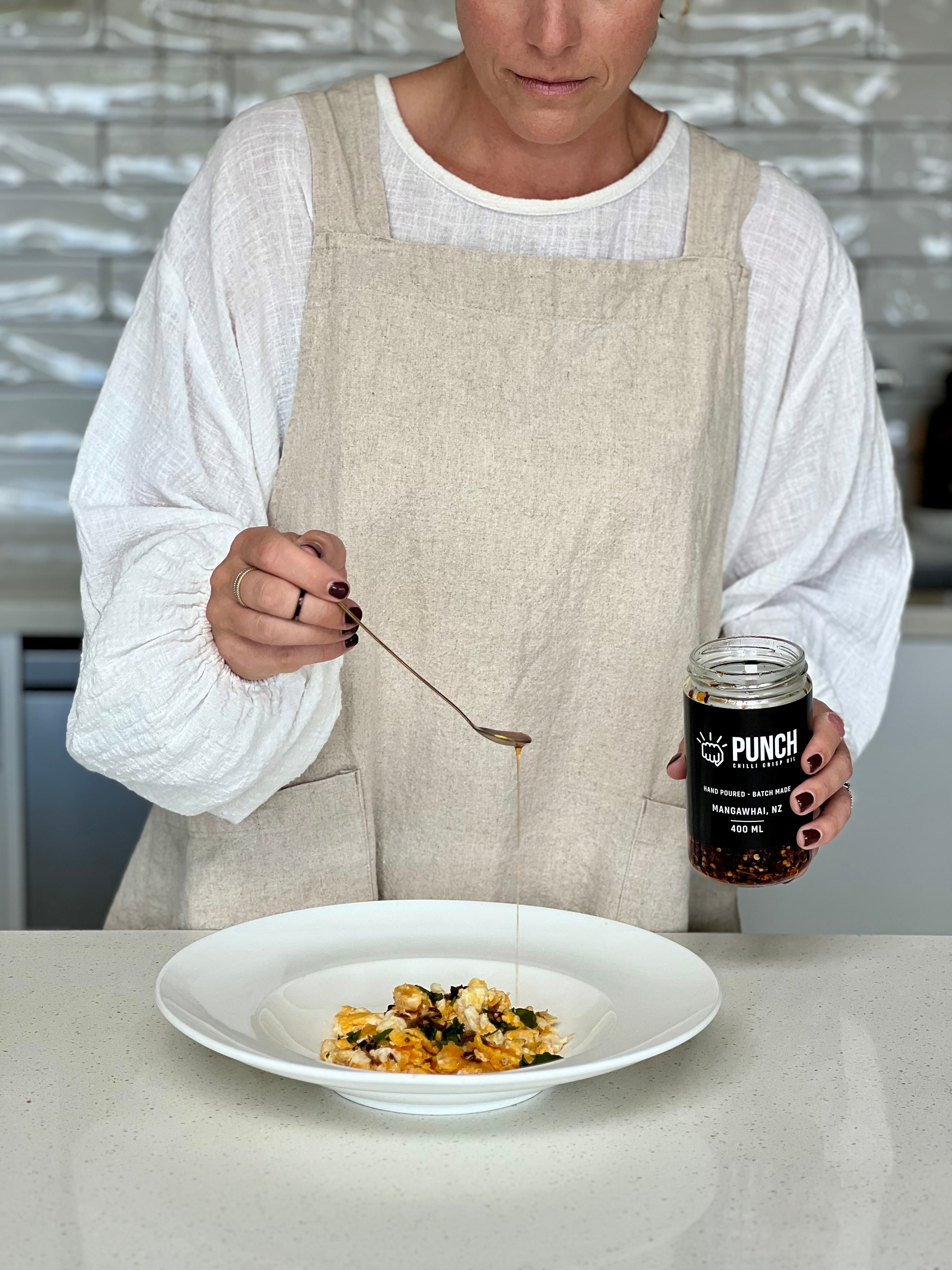Our chilli crisp oil is handmade and batch-poured with love (and a little heat). We use quality olive oil as our base because your food deserves better than boring, bland oils. Then we load it up with crunchy bits, savoury spice, and just the right kick of chilli to make everything you eat ridiculously delicious.